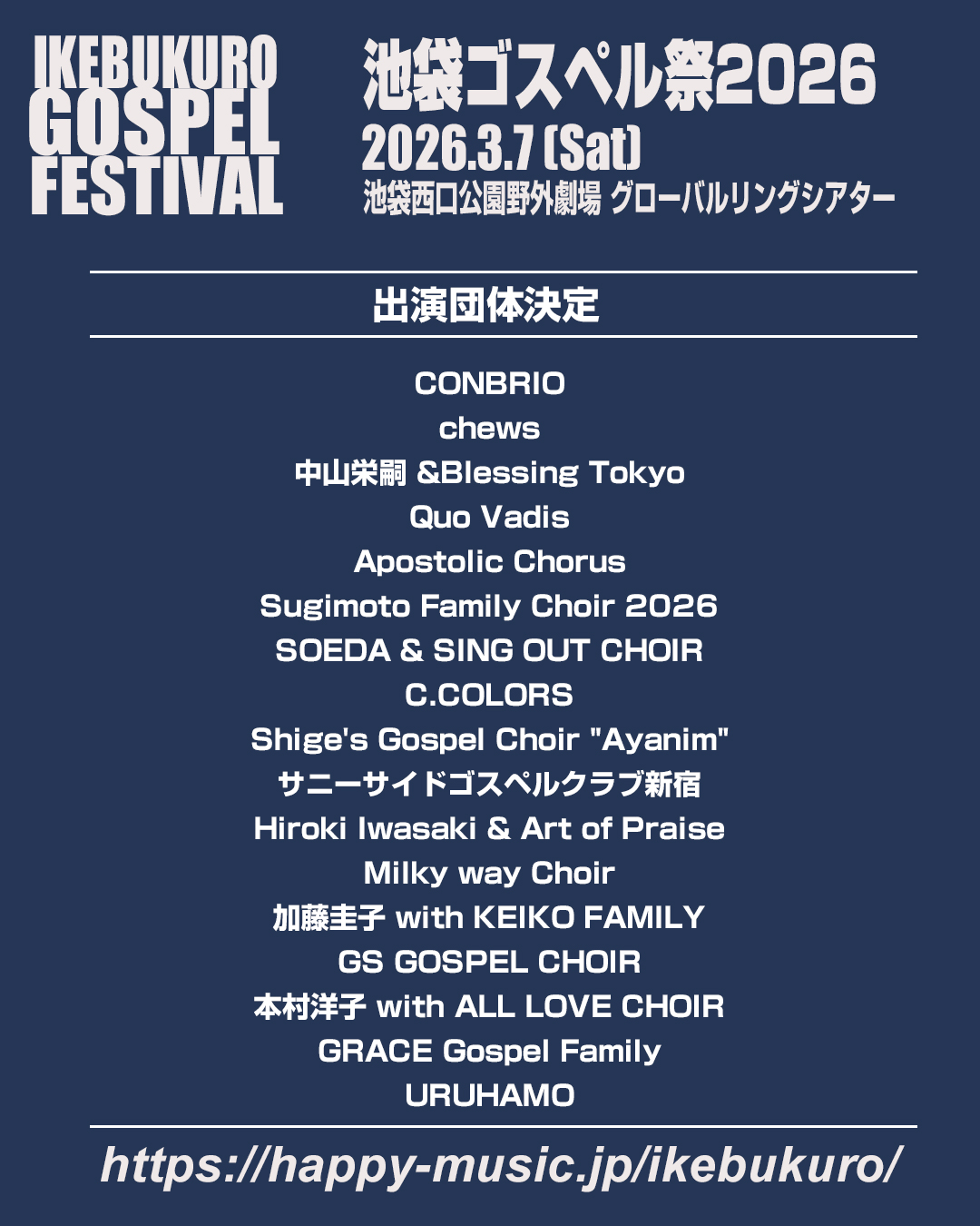 2026年も武蔵野ゴスペル祭にCONBRIOとして出演します。