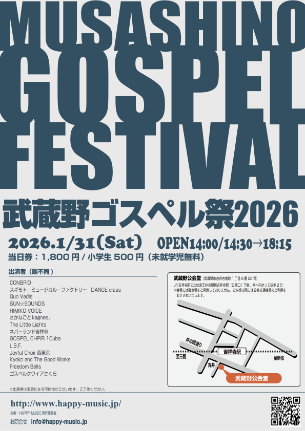 2026年も武蔵野ゴスペル祭にCONBRIOとして出演します。